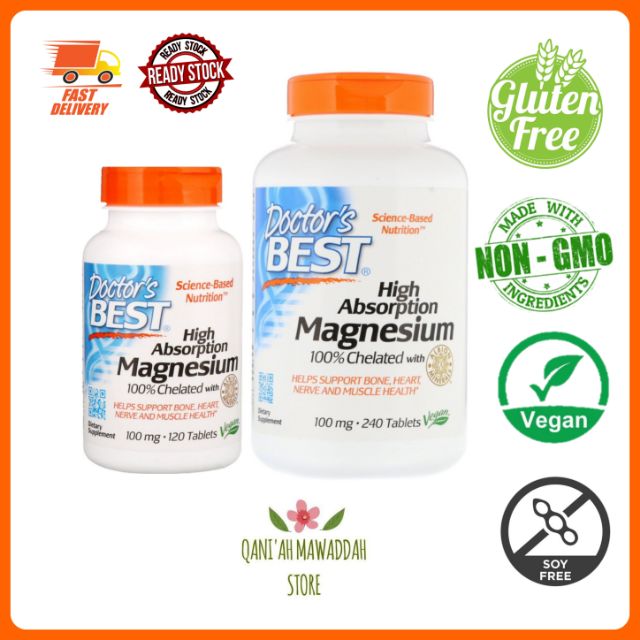 › Doctors-Best-Absorption-MagnesiumAmazon.com: Doctor's Best High Absorption Magnesium Glycinate ... This item: Doctor's Best High Absorption Magnesium Glycinate Lysinate, 100% Chelated, TRACCS, Not Buffered, Non-GMO, Vegan, Gluten & Soy Free, 100 mg, 120 Tablets (Packaging May Vary) $11.89 ($0.10/Count) Doctor's Best Vitamin D3 5,000 IU for Healthy Bones, Teeth, Heart and Immune Support, Non-GMO, Gluten-Free, Soy Free, 360 Count (Pack of 1)