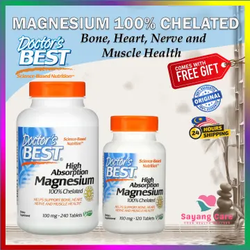 Magnesium - Doctor's Best Doctor's Best High Absorption Magnesium, 100 mg, 240 Tablets $19.99 Add to cart N/A Doctor's Best High Absorption Magnesium, Lysinate Glycinate 100% Chelated, 52.5 mg, 120 Veggie Caps $12.99 Add to cart Albion TRAACS Doctor's Best High Absorption Magnesium, 100 mg, 120 Tablets $11.99 Add to cart Albion TRAACS